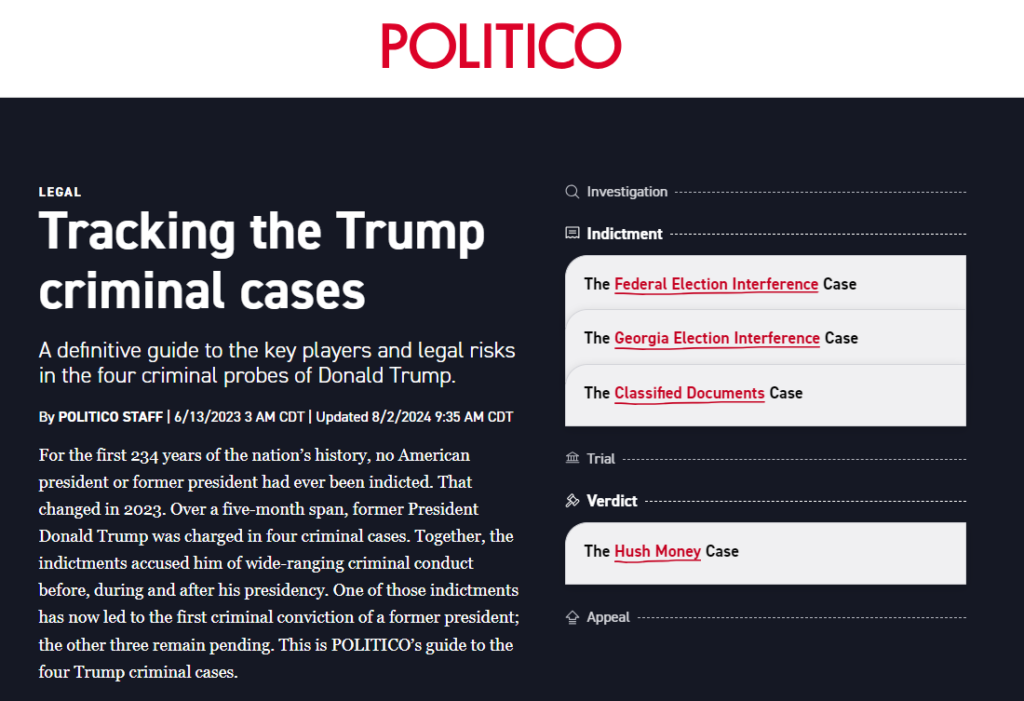 Tracking the Trump Criminal Cases – Politico Interactive