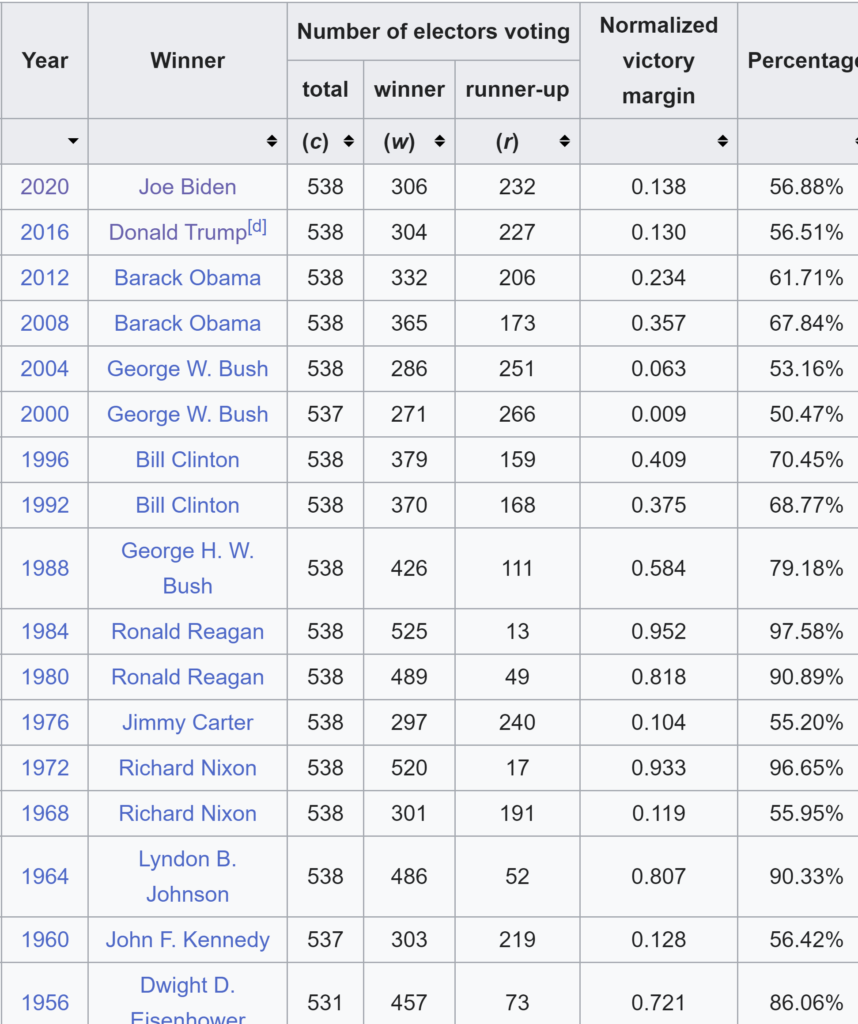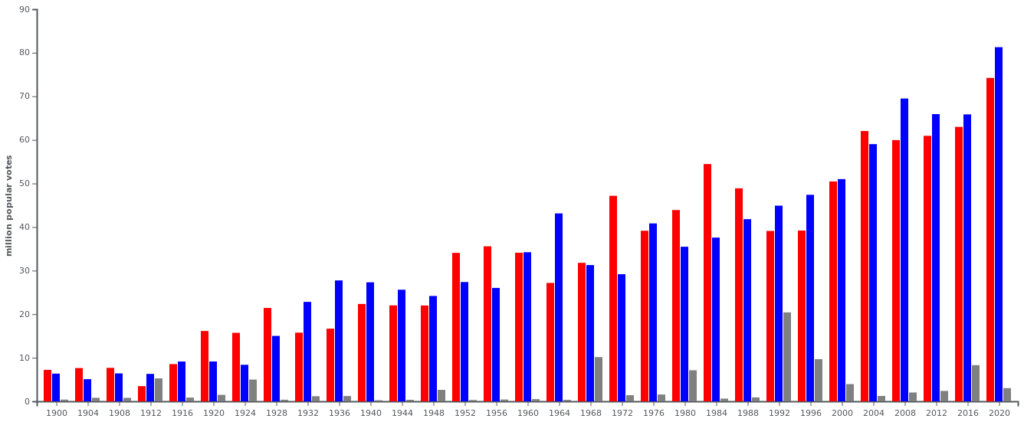 - Democrats have won the popular vote and lost the electoral vote in 2000, 2004, and 2016.